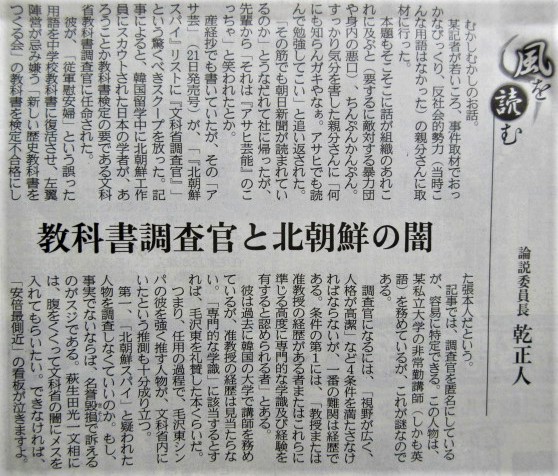 産経妙でも書いたが、その「アサ芸」(21日発売号)が、「『北朝鮮スパイ』リストに『文科省調査官』という驚くべきスクープを放った。記事によると、韓国留学中に北朝鮮工作員にスカウトされた日本の学者が、あろうことか教科書検定の要である文科省教科書調査官に任命された。